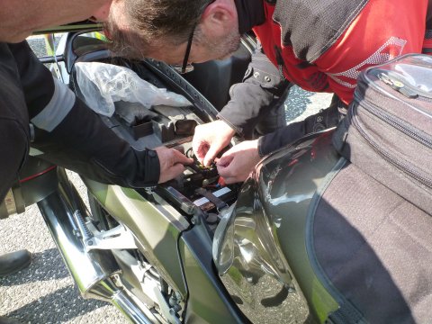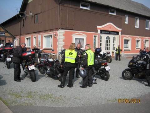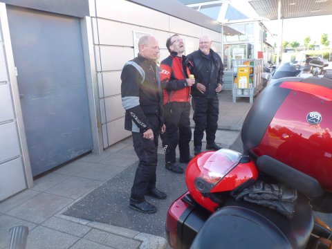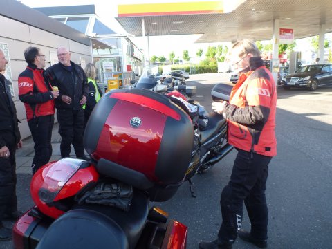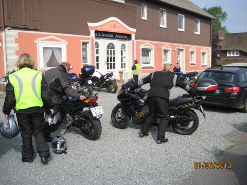 Lige lidt flere detaljer om mine problemer med min MC og link til hjemmesider nederst på siden. Lige før rundkørslen i Aulum gik min Black Bird i stå, det er ikke noget den har gjort før, så jeg var klar over at der var et problem, men jeg koblede til i farten og den gik i gang igen, der skulle meget gas til for at holde den i gang, men kom igennem rundkørslen, for derefter at konstatere at spedometer og omdr. Tæller stod stille, jeg kørte som bageste mc og begyndte at komme op foran de andre, for at få dem med ind på den første rasteplads. Der var næsten ingen strøm på den nye batteri som var kommet på i tirsdags, vi fik startkabler på og den gik i gang igen, men så snart vi fjernede dem fra Ingolf`s BMW gik den i stå, den ladede åbenbart ikke eller kun meget lidt, vi var lige ved at tænke på at få den bugseret hjem, da Jens Chr. Foreslog at slukke lyset, så kunne den holde sig i gang og vi besluttede at køre videre, det gik uden problemer. Vi kørte ca. 65 km. Da Ingolf som var førehund kørte ind på en rastepads, han ville forrebygge at vi holdt nede på motorvejen med en total død batteri og en død motorcykel, der var heller ikke kommet så meget strøm på, at den kunne starte igen efter de 65 km. næsten total død, så han foreslog at jeg fik en af de andres batterier på, vi røg først på Jens Chr.`s da de de to MCer jo ligner hinanden, men den passede slet ikke, vi så på et par andre som heller ikke passede, så blev der set på Ingolf`s kone Lissy`s BMW og vi kunne konstatere at den passede, lidt højere men den kunne være der, Hondaen kunne nu selv starte, Lissy måtte så have startkabler på og den var så også i gang. Så gik det ellers afsted ned til det aftalte motorvejs rasteplads ved Kolding hvor vi ville tanke, vi holdt en lille pause og både BMWen og Hondaen sprang i gang uden problemer, da vi skulle køre den sidste del af turen til BB Dannevirke i Owschlag. Vi ankom kl. 19.45 Ingolf havde bestilt mad på kroen til kl. 20.00 så det passede fint. De andre som var kørt om formiddagen tog imod os uden for B&B Dannevirke, vi gik på kroen og fik noget rigtig godt mad. ( Black Birden kørte uden problemer resten af turen dog med slukket lys, den blev dog skånet for Lørdags turen hvor vi kørte 2 på Anna-Maries mc. Tak til Ingolf og Lissy for hjælpen!) Der er ikke brug for skrive mere, da Hans Otto og Bjarne har lavet en fin beskrivelse af turen. Ingolf`s tur om Lørdagen ligger på www.tourstart.org den ligger som en offentligt rute så den er tilgænglig når man er oprettet, sammen med andre ruter. Den hedder Eckernførde/Kappeln og kan downloades. Andre link: Kroen som vi spiste på ved siden af BB Dannevirke har hjemmesiden www.landhaus-hentschel.de/ BB Dannevirkes hjemmeside er www.bb-dannevirke.eu/