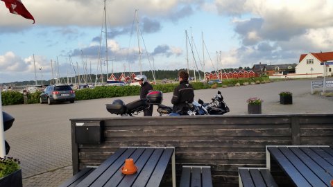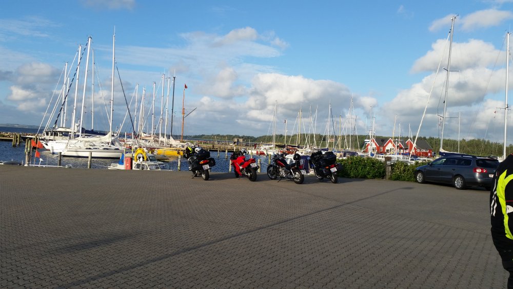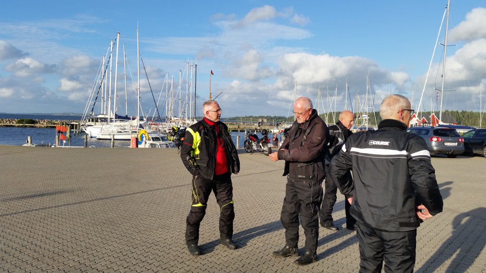 På denne skønne (i forhold til de foregående uger) tirsdag aften i ferieperioden, var der mødt 8 mc’er + en godte op på havnen, for at køre en tur. Der var også en ny mand iblandt, velkommen til dig Niels.