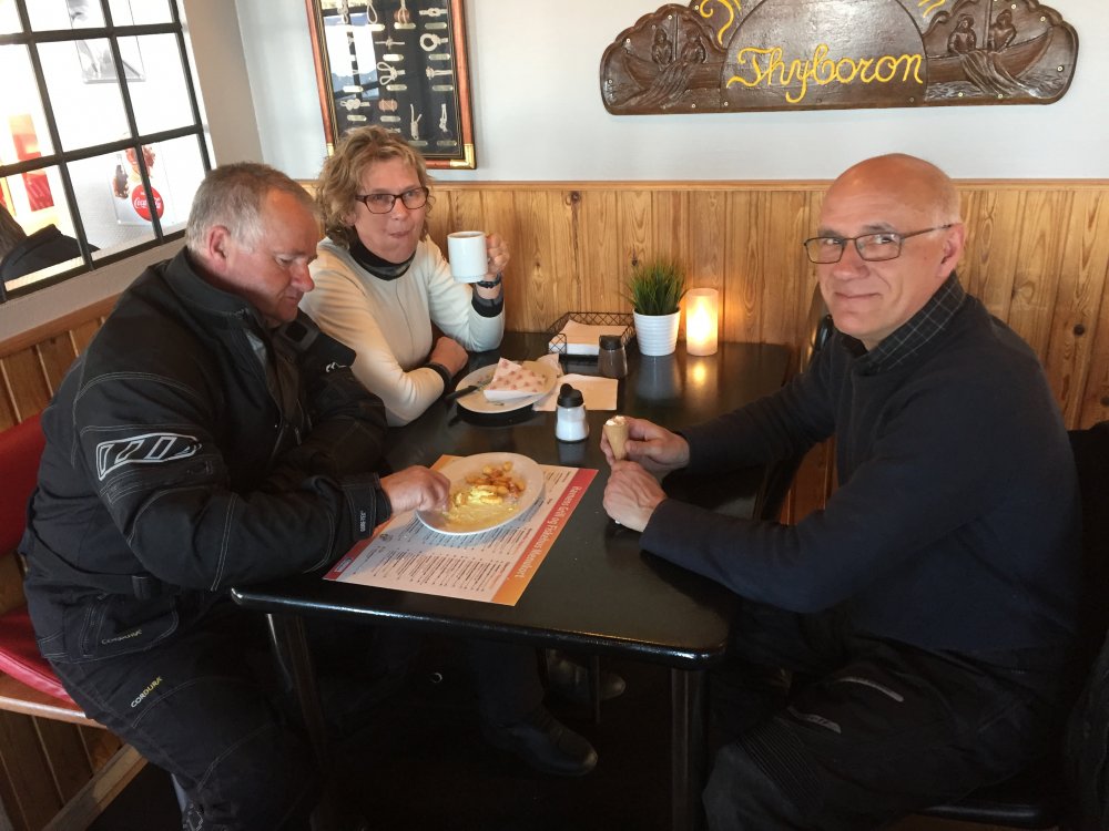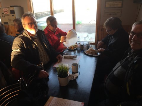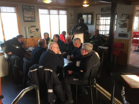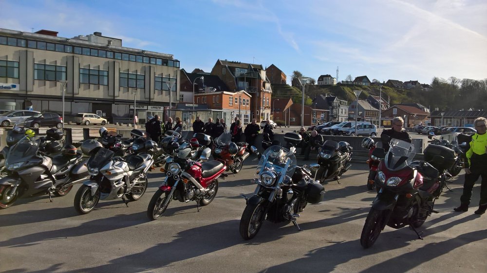 Denne tirsdag havde temperaturen sneget sig op på to cifre. Det kunne også ses på deltagerantallet. Vi var for første gang i sæsonen over 20. Jørgen Schlie var aftenens tour master, og via det meste af vejnettet i den gamle Thyborøn-Harboøre Kommune ledte han os ud på havnen i Thyborøn. Her blev der spist is, pølser m.m. Ligesom verdenssituationen fik et par tilkendegivelser med på vejen. Endelig en tirsdag, hvor man også følte, det var forår.